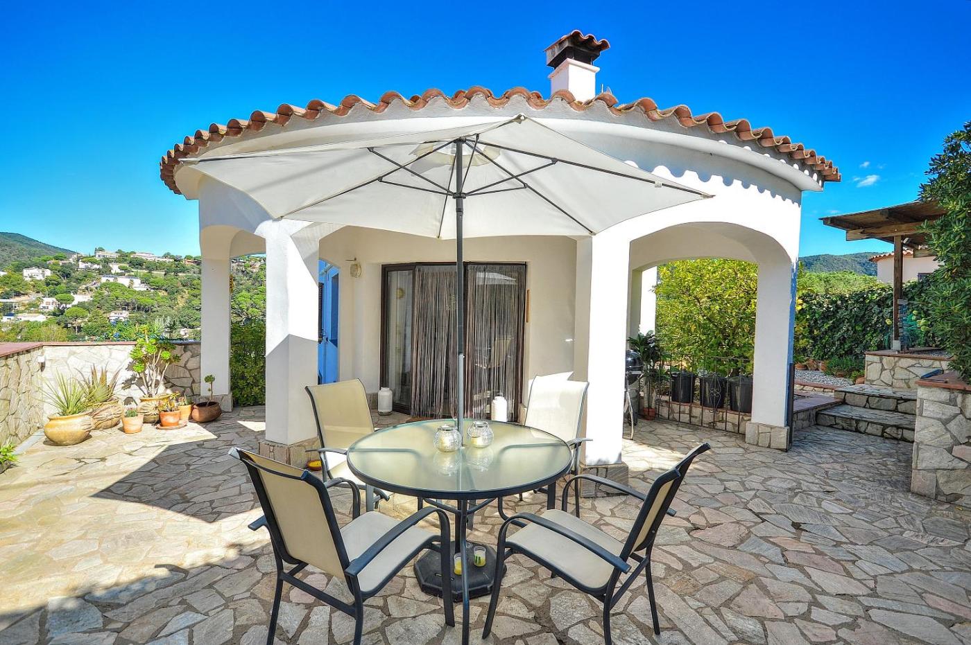 The villa has 3 bedrooms, 2 bathrooms, bed linen, towels, a TV with streaming services, a fully equipped kitchen, and a terrace with mountain views. For added privacy, the accommodation features a private entrance.