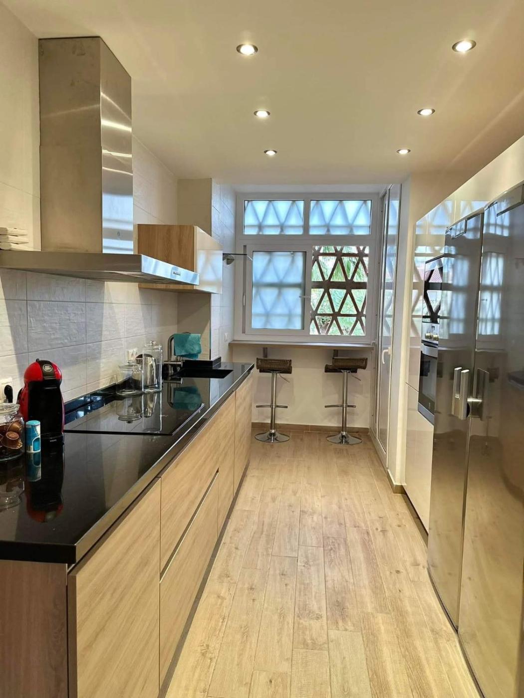 Three-Bedroom Apartment. This apartments standout features are the pool with a view, hot tub and spa bath. The fully equipped kitchen has a stovetop, a refrigerator, a dishwasher and kitchenware. The spacious air-conditioned apartment features a flat-screen TV with streaming services, a washing machine, a private entrance, a tea and coffee maker as well as garden views. The unit has 4 beds.