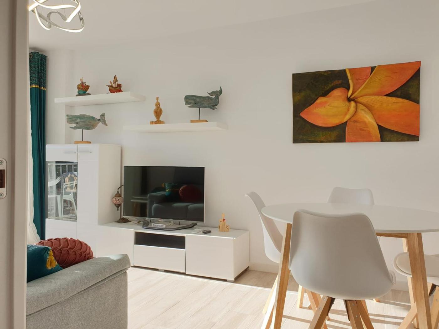 The apartment has 2 bedrooms, 1 bathroom, bed linen, towels, a flat-screen TV with streaming services, a dining area, a fully equipped kitchen, and a balcony with sea views. The accommodation is non-smoking.