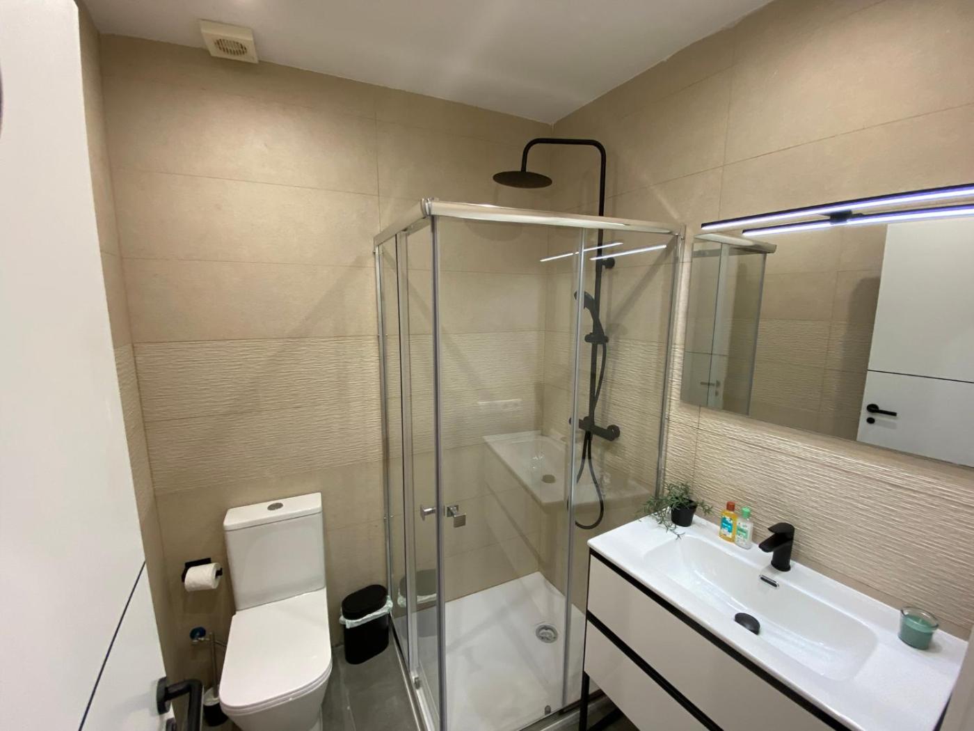 One-Bedroom Apartment. This air-conditioned apartment features 1 living room, 1 separate bedroom and 1 bathroom with a shower. In the fully equipped kitchen, guests will find a stovetop, a refrigerator, a dishwasher and kitchenware. The apartment has tiled floors, a seating area with a flat-screen TV, a washing machine, a tea and coffee maker as well as a quiet street view. The unit has 2 beds. ;