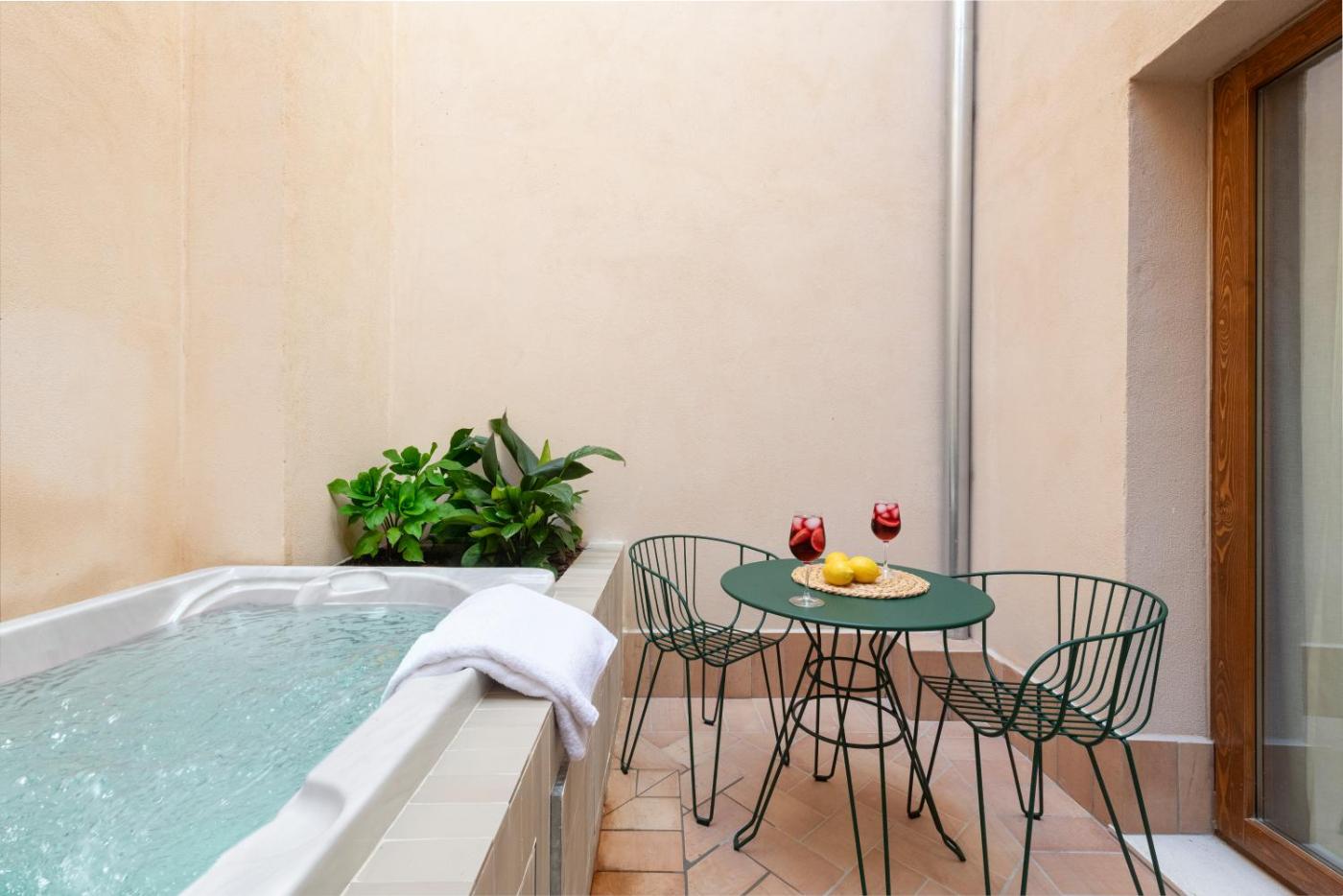 One-Bedroom Apartment with Spa Bath. This apartments standout features are the hot tub and spa bath. Boasting a private entrance, this air-conditioned apartment includes 1 living room, 1 separate bedroom and 1 bathroom with a shower and a hairdryer. In the well-fitted kitchen, guests will find a refrigerator, a dishwasher, kitchenware and a microwave. Featuring a terrace, this apartment also offers a washing machine, a tea and coffee maker and a flat-screen TV. The unit has 2 beds. ;
